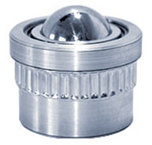| 9810-A Carbon Steel Housing with Stainless Steel Ball High capacity, tolerance ring ball transfer unit. Stainless steel balls (AISI 440) but other materials as standard. As seen on diagram under photographic picture to the right (click to enlarge for clarity): A= 22mm B= 12mm C= 6mm D= 21mm E= 24mm F= 2.4mm |
