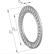 | AXK75100 Axial Needle Roller and Cage Assembly Comprises of metal axial cages with integral needle rollers. They have a very low axial section height. The cage assemblies can support high axial forces in one direction. Radial loads must be supported by separate means. Axial needle roller and cage assemblies require hardened and ground running surfaces as a raceway. |
