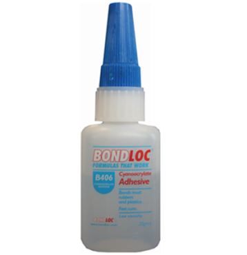 | Bondloc B406 Instant Adhesive 50gm Applications B406 is an excellent rubber and plastic bonder that will also bond metals, plastics, wood, ceramics, rubber, leather, card, glass and many other materials. Liquid Properties