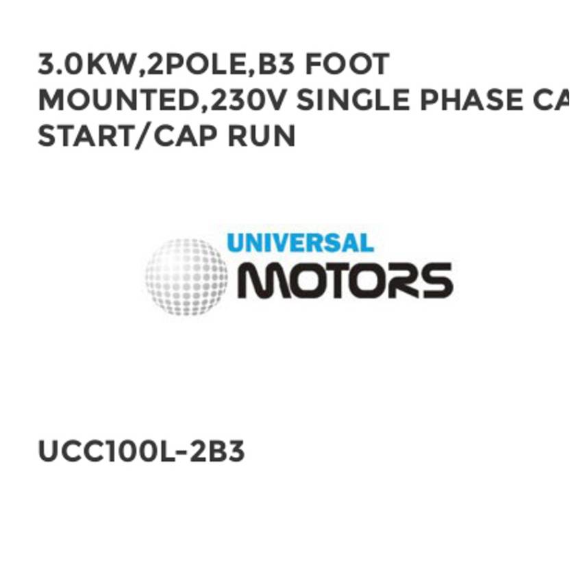 3.0KW,2POLE,B3 FOOT MOUNTED,230V SINGLE PHASE CAP START/CAP RUN