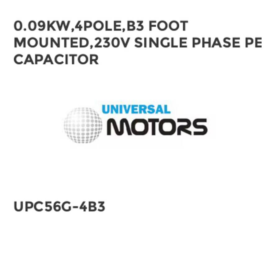 0.09KW,4POLE,B3 FOOT MOUNTED,230V SINGLE PHASE PERM CAPACITOR