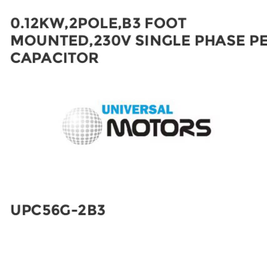 0.12KW,2POLE,B3 FOOT MOUNTED,230V SINGLE PHASE PERM CAPACITOR