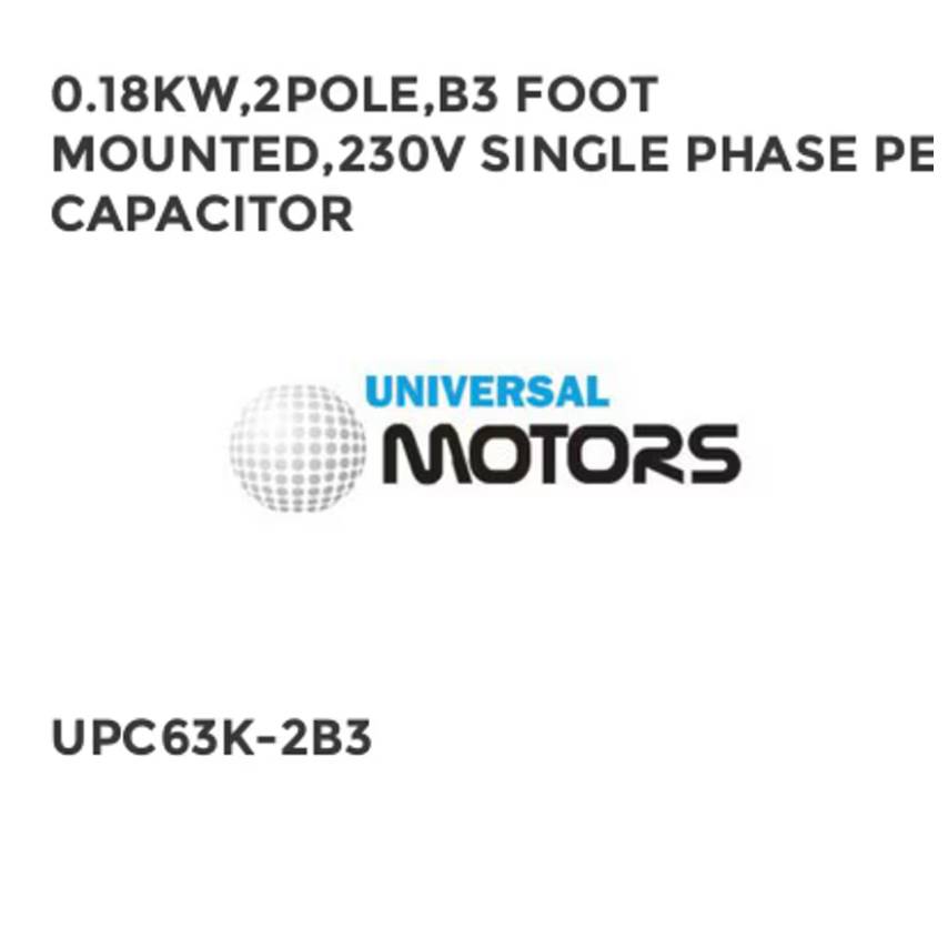 0.18KW,2POLE,B3 FOOT MOUNTED,230V SINGLE PHASE PERM CAPACITOR