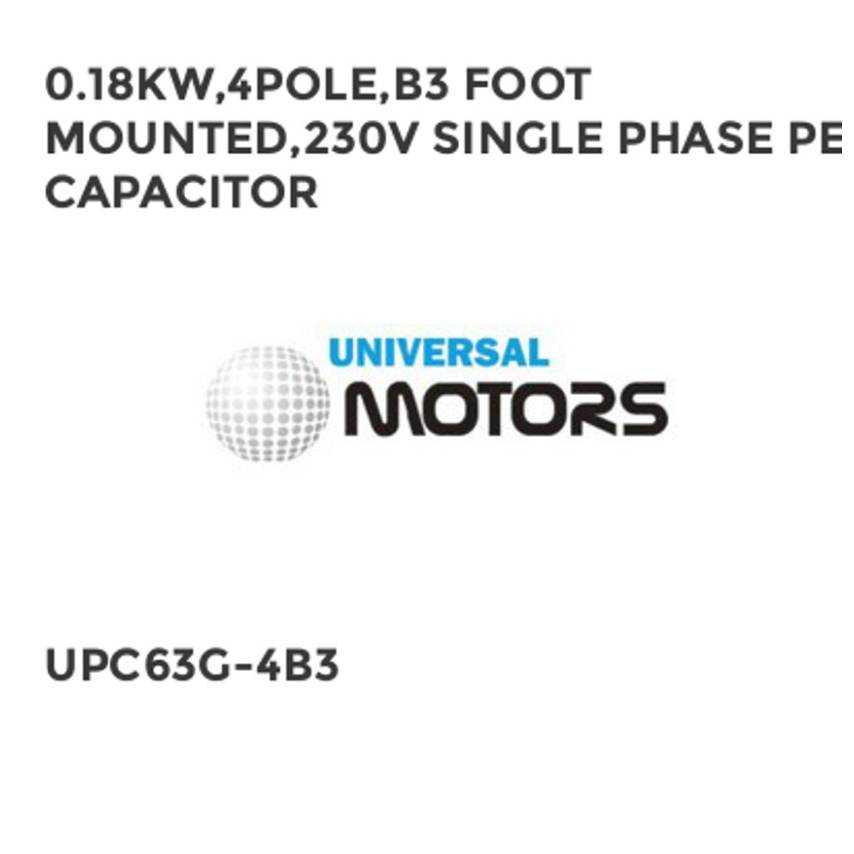 0.18KW,4POLE,B3 FOOT MOUNTED,230V SINGLE PHASE PERM CAPACITOR