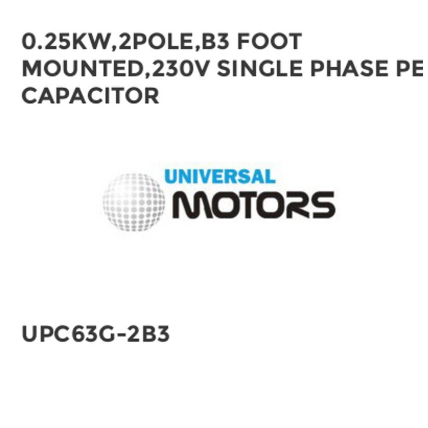 0.25KW,2POLE,B3 FOOT MOUNTED,230V SINGLE PHASE PERM CAPACITOR