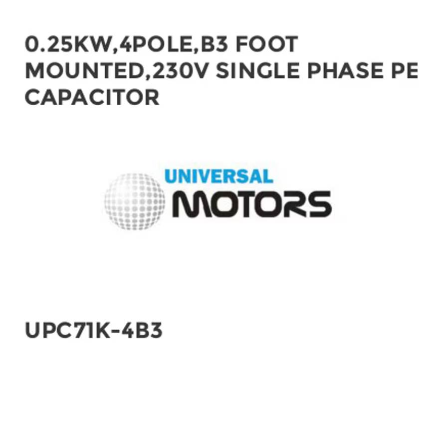 0.25KW,4POLE,B3 FOOT MOUNTED,230V SINGLE PHASE PERM CAPACITOR