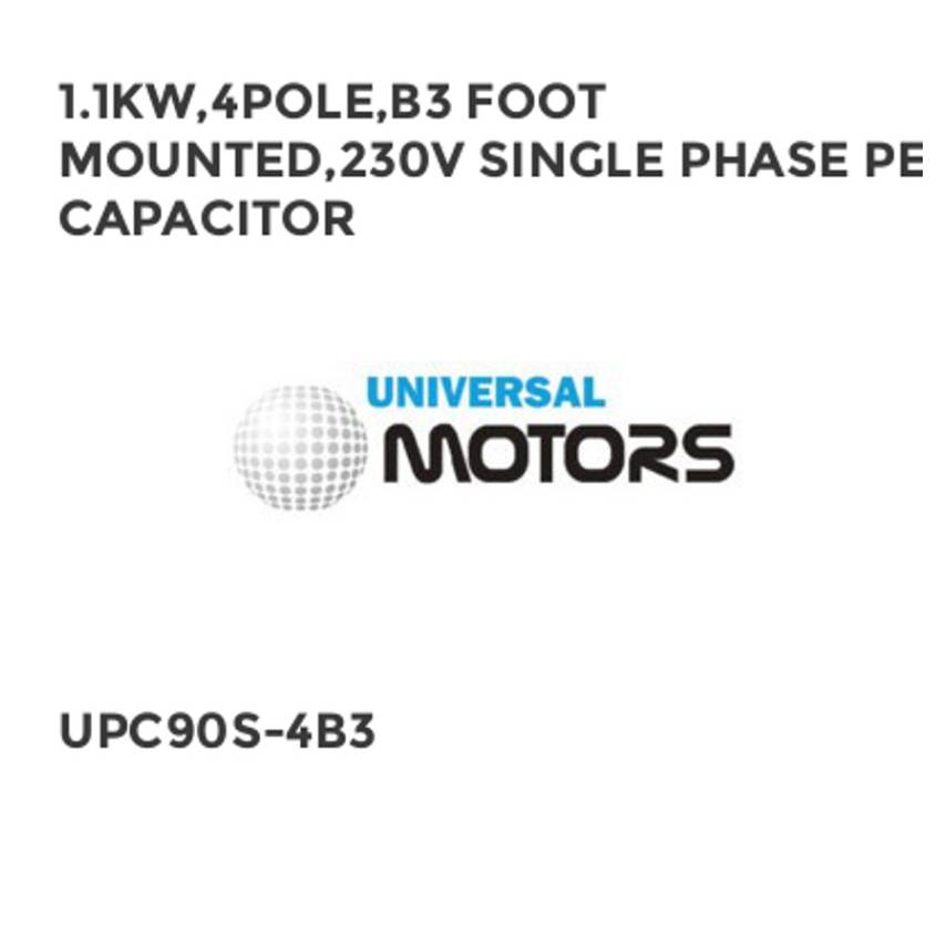1.1KW,4POLE,B3 FOOT MOUNTED,230V SINGLE PHASE PERM CAPACITOR