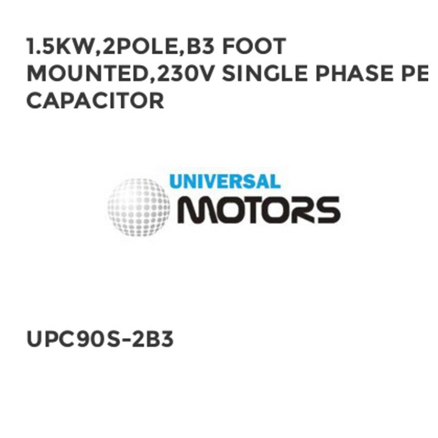 1.5KW,2POLE,B3 FOOT MOUNTED,230V SINGLE PHASE PERM CAPACITOR