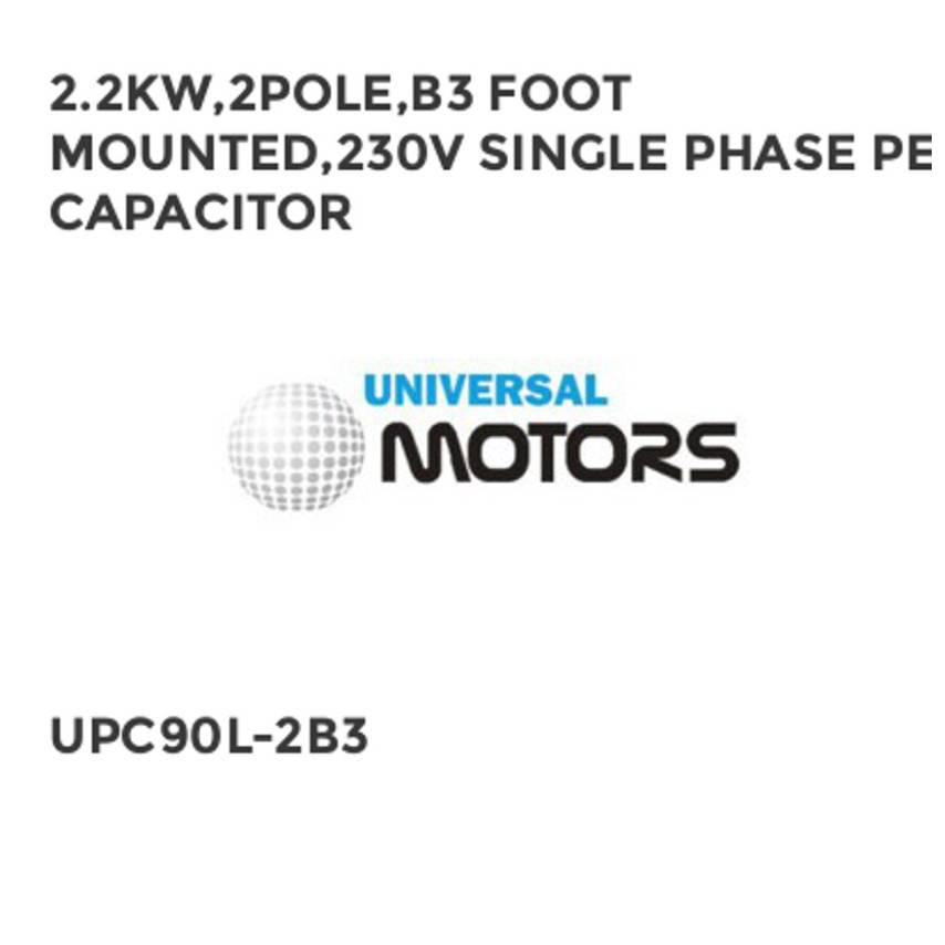 2.2KW,2POLE,B3 FOOT MOUNTED,230V SINGLE PHASE PERM CAPACITOR